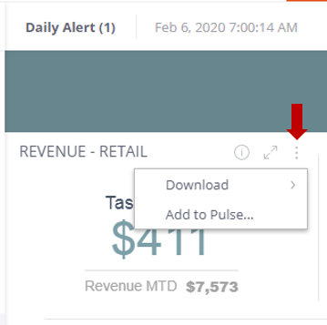 For an Indicator widget, from the widget’s menu, select Add To Pulse.