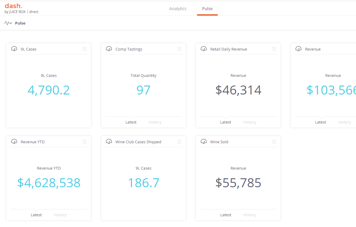 Data Alerts are triggered by conditions you define for your widgets. For example, if you have a widget that represents your company’s revenue, you can define an Alert that notifies you when this revenue reaches or falls below a certain threshold. Alerts are aggregated in tiles found on the Pulse page: