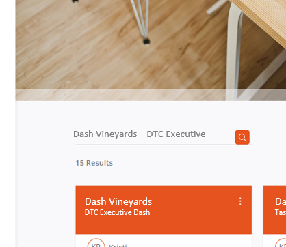 Alternatively, if you have a lot of dashboards, you can search for dashboards by typing the title in the Search field. As you begin typing, any relevant results are displayed.